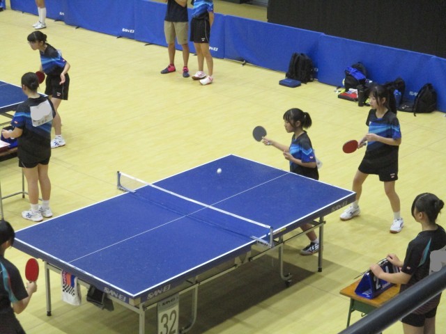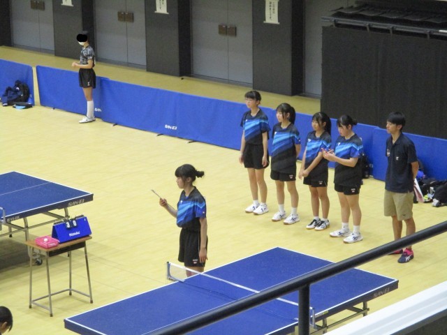 卓球部の女子は、宝来屋ボンズアリーナにおいて団体戦と個人戦が行われました。団体戦では、予選リーグを二位で通過し、決勝トーナメントに進みましたが、一回戦で富田中と対戦し、惜しくも敗退しました。個人戦では、一人一人が健闘しましたが二日目進出とはなりませんでした