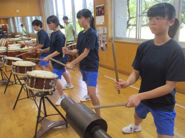 本日、うねめ太鼓6回目がありました。2年生は、太鼓の役割や配置が決まり、完成に向けて練習に励んでます。1回の練習でも、着実に進歩し、技術が向上しています。本番が楽しみですね。
