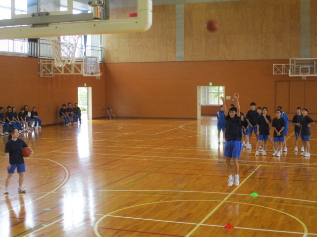10月7日(火)に体育祭がありました。学年対抗で各種目を競いました。種目2つ目は、フリースローでした。各学年12名の選抜メンバーで行い、3年生が1位でした。