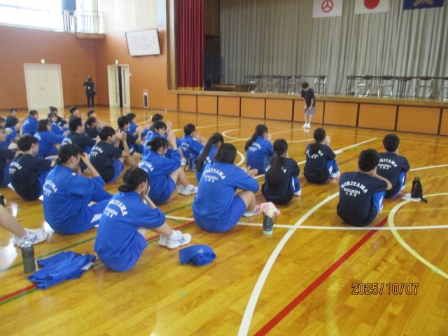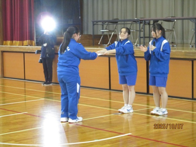 10月7日(火)に体育祭がありました。学年対抗で各種目を競いました。閉会式の様子です。総合優勝は3年生でした。