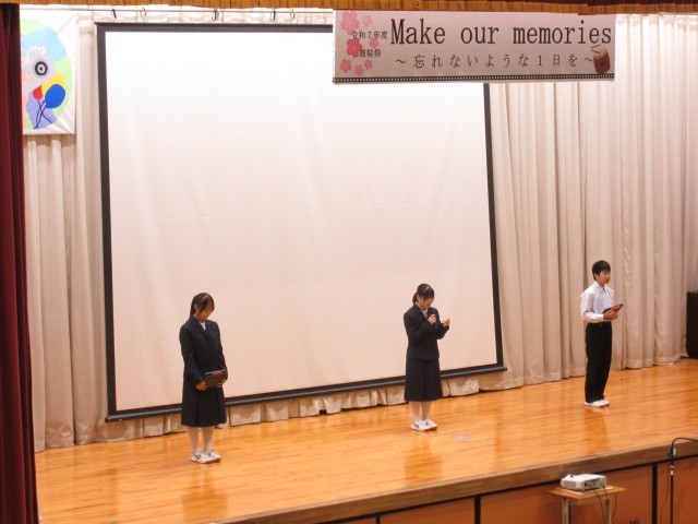 10月18日(土)に文化祭が開催されました。オープニングでは、校長先生の話、実行委員長の話、テーマ・テーマソング・シンボルマークの紹介、開催宣言がありました。