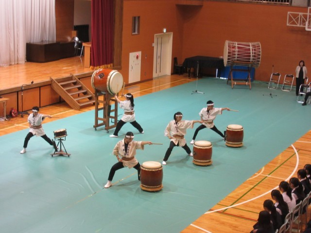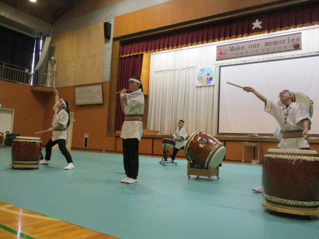 10月18日(土)に文化祭が開催されました。うねめ太鼓保存会小若組の演奏がありました。2曲に加え、アンコール演奏もあり、大いに盛り上がりました。