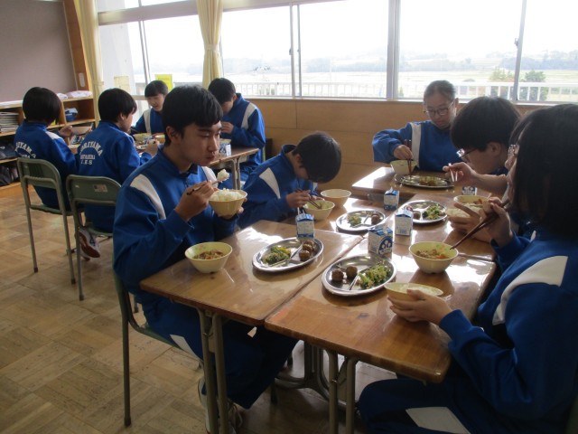 メニューは、麦ごはん、和風肉団子、ブロッコリーのサラダ、すきやき煮でした。