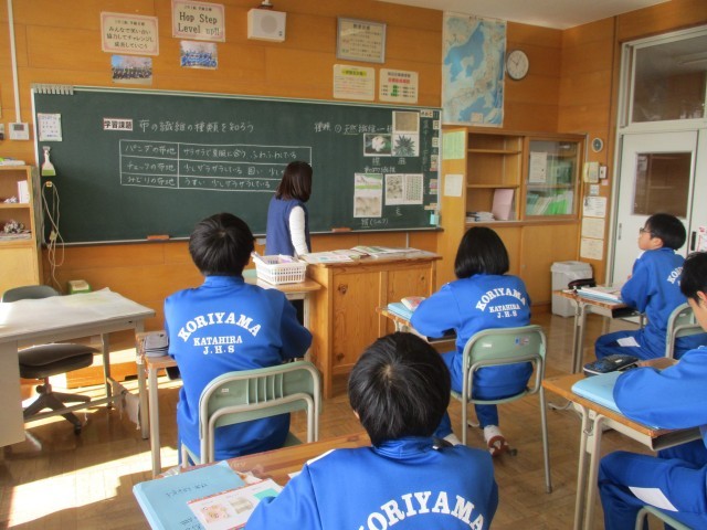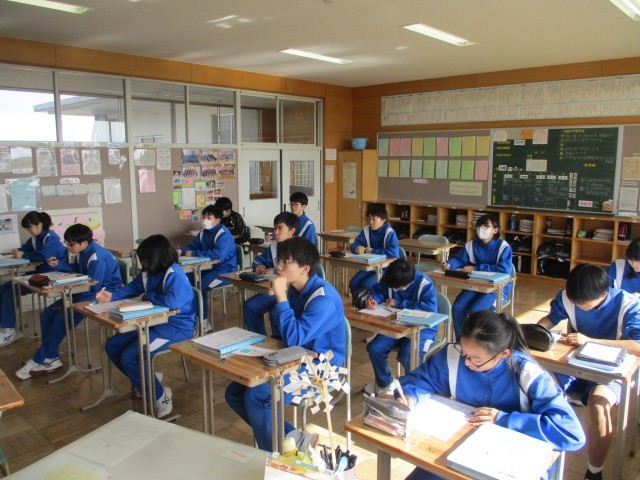 2年生の家庭科の授業の様子です。布の繊維の種類について学習をしました。
