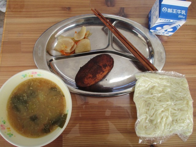 本日のメニューは、ゴマ坦々麺、ココア揚げパン、白菜のナムルでした。