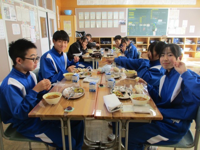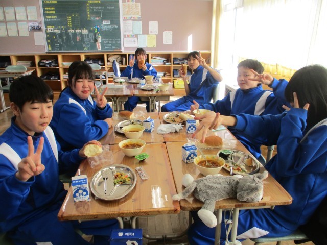 メニューは、コッペパン、キャラメルクリーム、彩野菜のアーモンド和え、マカロニのキャロットソース煮、県産ブルーベリーのミニゼリーでした。