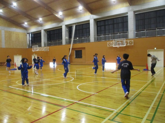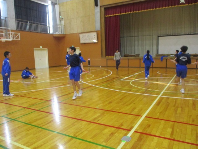 1年生の保健体育の授業の様子です。ダンスの授業で、リズムに合わせて、縄跳びを跳んでいました。けっこう体力を使いますよね。