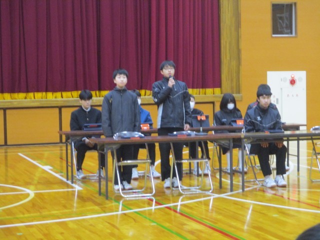 本日、4校時目に生徒会総会が行われました。生徒会本部をはじめ、各委員会、各部活動から今年度の反省が発表され、最後に会計中間報告もありました。