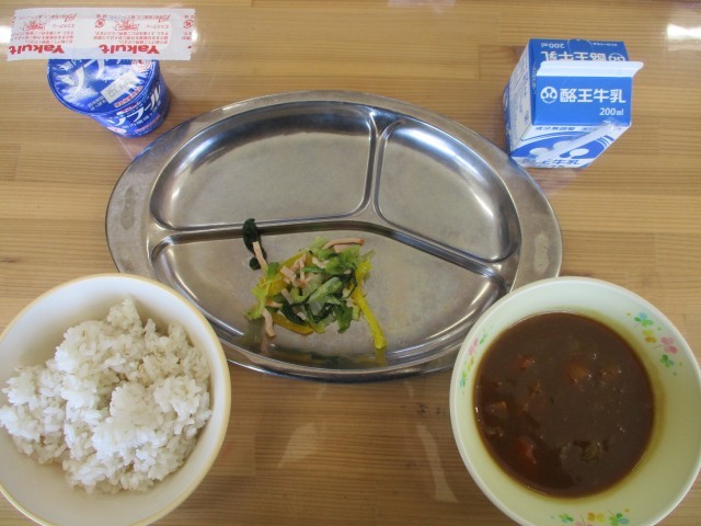 3月11日のメニューは、甘口ポークカレーライス、レモン風味サラダ、ヨーグルトでした。