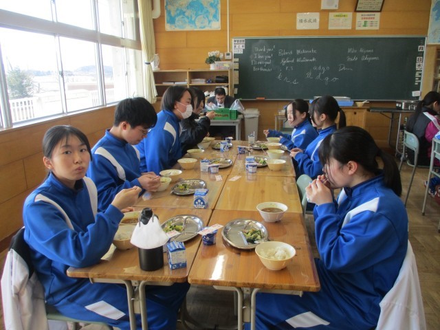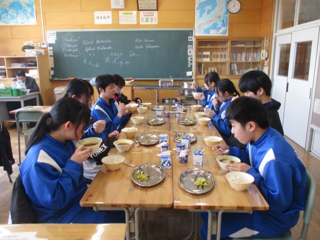 本日は3年生にとって、中学校生活最後の給食でした。バランスのとれたメニュー、みんなでの会食、3年間の給食の時間が大切な思い出となりましたね。