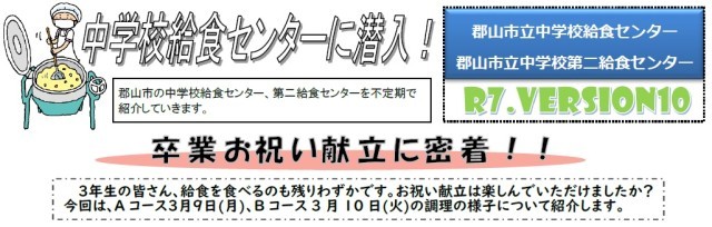 給食センターに関する情報を掲載しました。「第二給食センターから」に掲載しておりますのでご覧ください。中学校給食センターに潜入!VERSION10