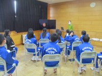 実際の赤ちゃんを模した人形を抱っこして、いのちの重みを実感しました。また、お互いにいのちの音を聞き合いました。予想していたよりもかなりしっかりとした音が聞けたようです。その後、いのちが生まれるまでの過程などからとても大切なものだということを実感していました。