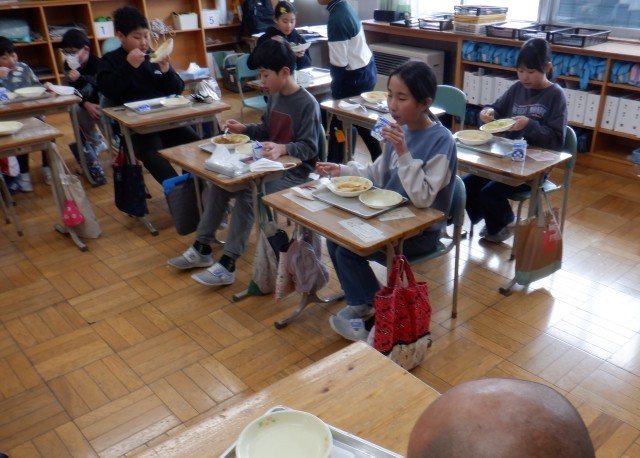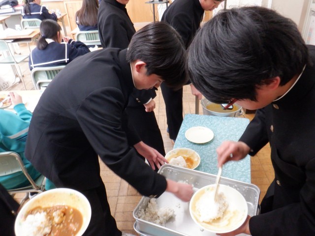 前期課程の児童も後期課程の生徒も、おかわりをしてたくさん食べました。