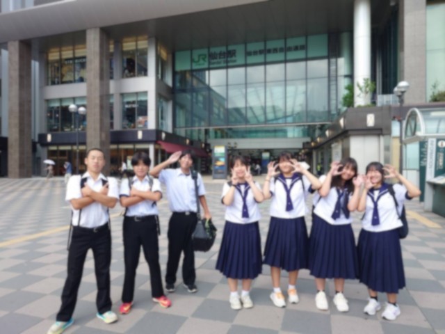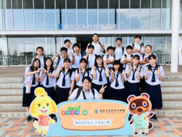 7,8年生は仙台に無事到着し、8年生は班別自主研修出発し、7年生は仙台うみの杜水族館に到着しました。