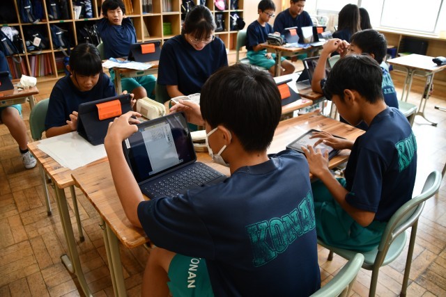 7,8年生は先週金曜日に行った学習旅行のまとめを行っていました。