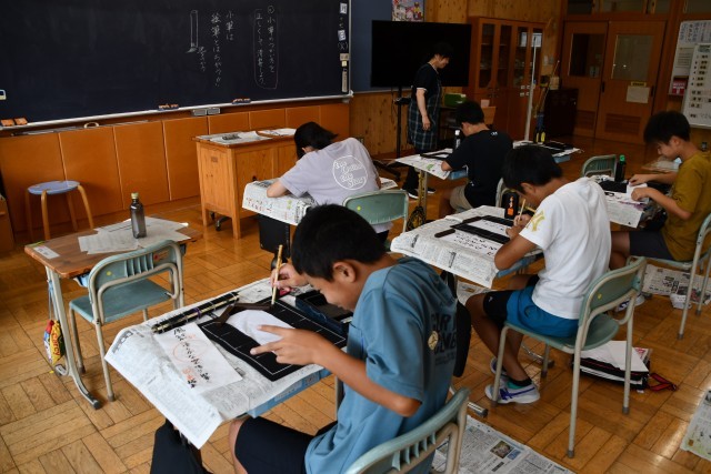 みんな静かに習字を書いていました。