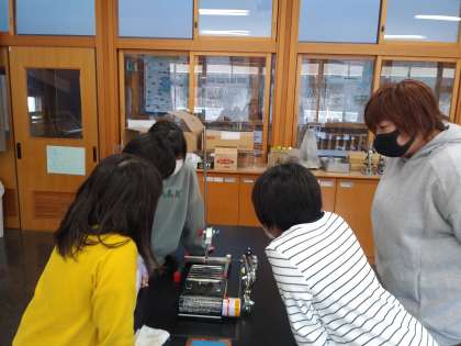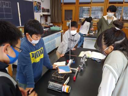 2校時目のフリー参観で、理科の学習を行いました。金属がどのように温まっていくのかを、サーモインクを塗った銅棒と銅板を使って実験しました。サーモインクが青からピンクに変わっていく様子から、金属は熱した所からだんだん温まっていくことを理解することができました。