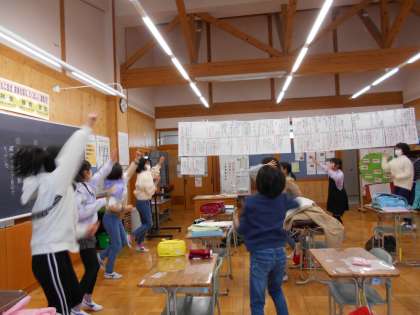 「学校のために行動しよう」5年生の学級目標の中にある一つのめあてです。今日は、朝から何人かが自主的にあいさつ運動に立っていました。朝の会では、少し難しいダンスに挑戦しました。朝から元気いっぱいな5年生でした。
