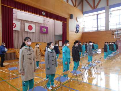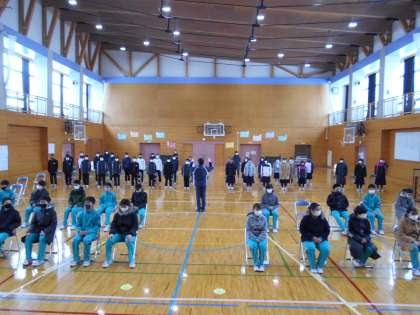 本日、後期課程の生徒中心に卒業式全体練習を行いました。心構えや礼法について指導があり、歌唱練習も行いました。9年生は真剣な態度で練習に取り組んでいました。学校全体が卒業式へ向け動き出しました。