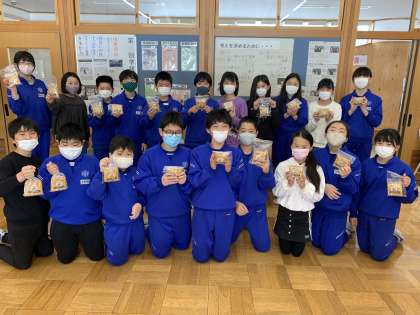 こおりやまの恵み安全対策協議会から6年生になめこをいただきました。令和元年度の福島県の生産量は全国7位だそうです。生産者の方々が丹精込めて育てたなめこ、おうちでおいしく味わってください。
