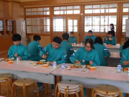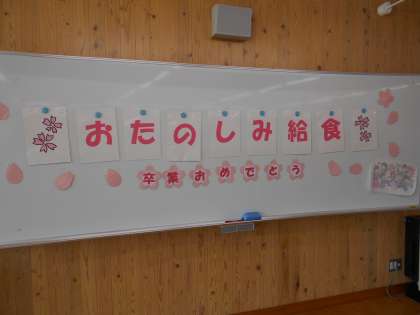 本日は、9年生の卒業を祝って「お楽しみ給食」でした。9年生のリクエスト中心に豪華メニューでした。9年生はランチルームでこれまでの学校生活をふりかえりながら、楽しく食べることができました。