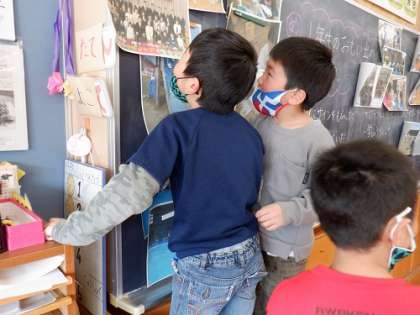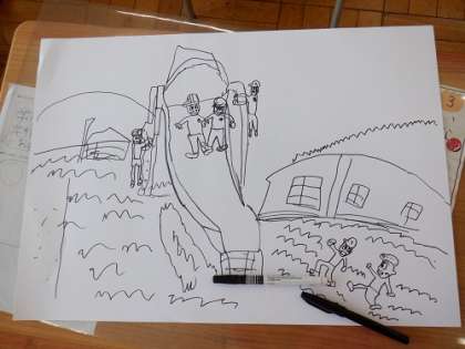 1年生の思い出を絵にしました。たくさん思い出があって、一つに決めるのが難しそうでしたが、みんな思い思いの絵を描いていました。