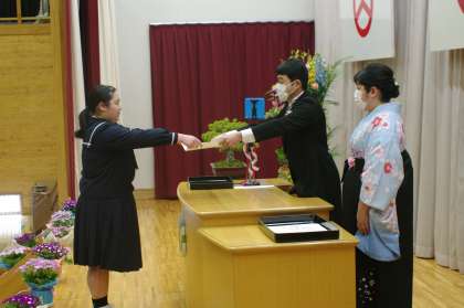 担任から呼名され、校長先生から一人ひとりに卒業証書が手渡されました。大きな声ではっきりと返事をし証書を受け取る姿は、本当に立派でした。