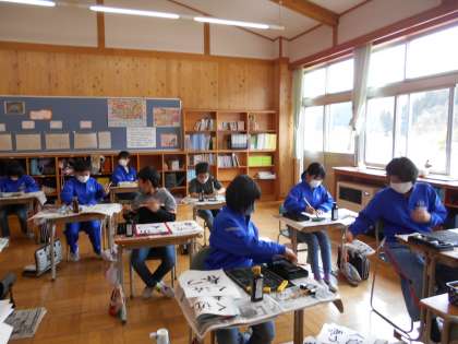 今日は、五年生の書写の学習のまとめとして「近づく春」という字を書きました。書く前に「今まで学習してきたことをふまえてこの字を書く時のポイントをあげるとしたら?」という問いに対して多くの手が上がりました。ひらがなは、漢字よりも少し小さく書く、しんにょうの二画目は少し前に倒す、春の日の下の部分は少し出すなどポイントを押さえて書こうとする姿が見られました。