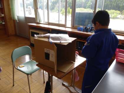 図工の学習で、「のぞいてみたら」を行いました。光の差し込み具合を考えながら段ボールに穴を開けたり、想像を膨らませながら作品を作ったりすることができました。とても集中しながら、楽しく行うことができました。