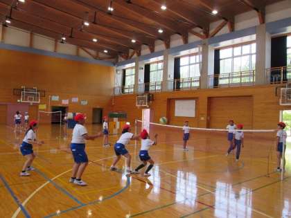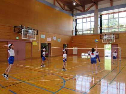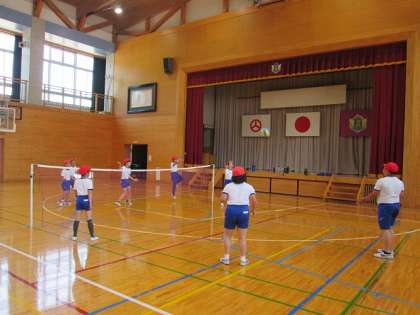 先日の体育では、バレーボールのルールを変えたキャッチバレーボールの試合を行いました。みんなで声を掛け合って、楽しく試合を進めることができました。
