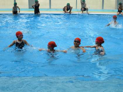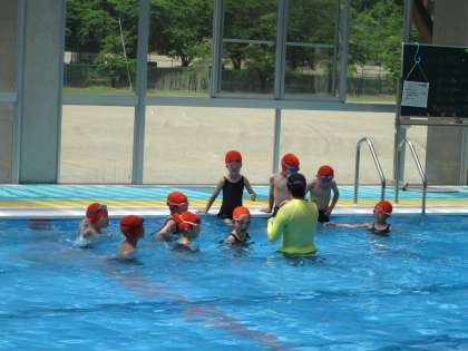 今日も1、2年生でプールに入りました。顔を付けるのを頑張ったり、たくさん潜ったりしました。