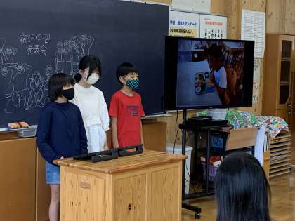 授業参観でおうちの方へ、「宿泊学習で学んだこと発表会」をしました。リハーサルを重ね、どうしたら伝わるか何度も直しただけあって、すばらしい発表会となりました。おうちの方からも感想をいただき、恥ずかしがりながらも喜んでいる様子でした。宿泊学習で学んだことを今後の自分たちに生かして生活していきたいと思います。