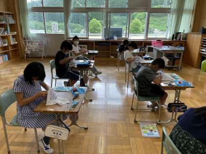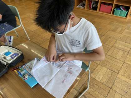 家庭科の学習で、なみぬいを行いました。初めて行う子が多く、みんな真剣に行っていました。