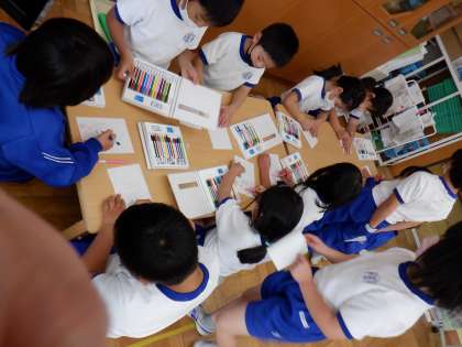 大きい行事が終了したので、1年生も係活動をスタートしました!記念すべき第1回目の活動は、ぬりえ係!係の人が作った絵にぬりえをするというものでした。「ここは何色だろ?」など、隣の友達と相談しながら、楽しく活動することができました♪
