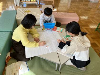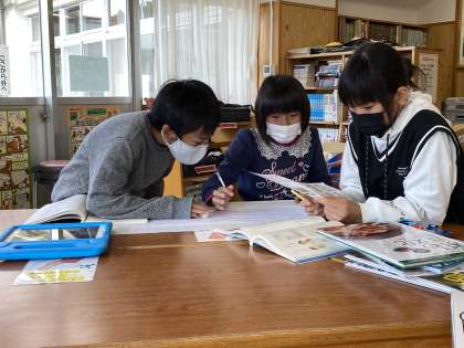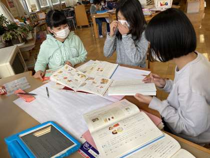 国語の学習で学んだことをいかし、日本文化を発信するためのパンフレットを作成しています。読み手にどうしたら伝わるか、楽しく読んでもらえるかなど、さまざまな工夫をし下書きを書いているところです。どんなパンフレットができあがるか楽しみです♪