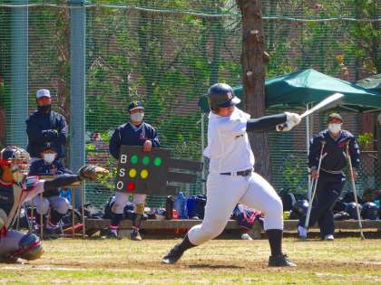 5月3日(火)、野球部が新チームになって初めての公式戦に出場しました。大槻・湖南連合チームとして本校からは、9名の生徒が参加しました。緊張する中でもボールをよく見て、おもいっきりのスイングやバント、そして一塁への全力疾走と十二分に力を発揮しました。保護者の皆様の応援も生徒の背中を力強く後押ししていました。