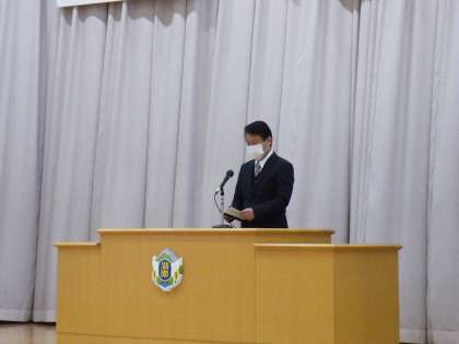 1月10日(火)1校時、体育館で始業式を行いました。外は雪が降っており、寒い中での第3学期のスタートとなりました。始業式では、校長先生より「第3学期は、1年を締めくくるとっても大事な学期です。お友だちと仲良く過ごして、心にとめてほしい2つの言葉「挑戦」と「感謝」を意識して全校生131名、みんなで心一つに、実を結ぶ学期になるよう頑張って行きましょう。」と話がありました。子ども達は、校長先生の話をうなずきながら真剣に聞いていました。子ども達の成長が楽しみです。