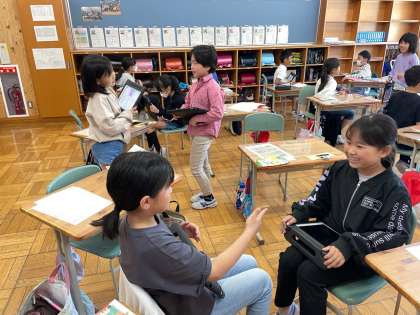国語の授業で、漢字クイズをしました。クイズのヒントには、学習した漢字の音読みと訓読みを使いました。音読みと訓読みの特徴を理解して漢字に親しみながら、クイズを楽しむことができました!