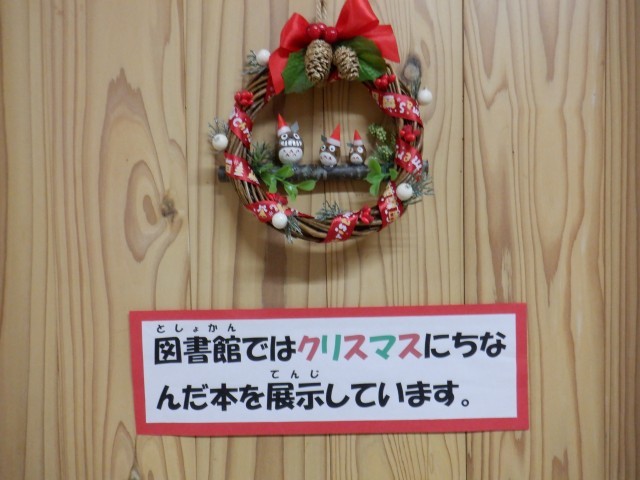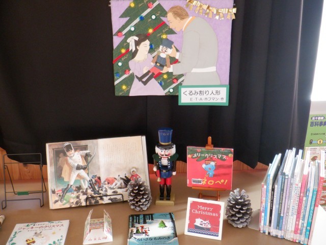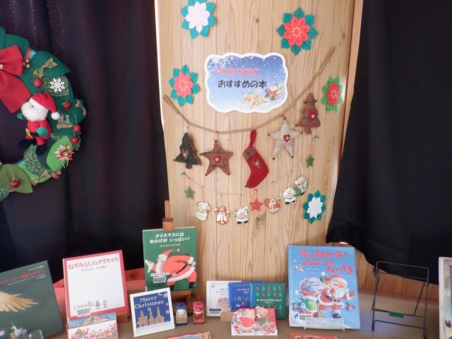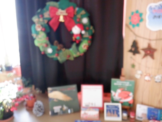 今月はクリスマスの飾りと、関連した本を紹介しています。