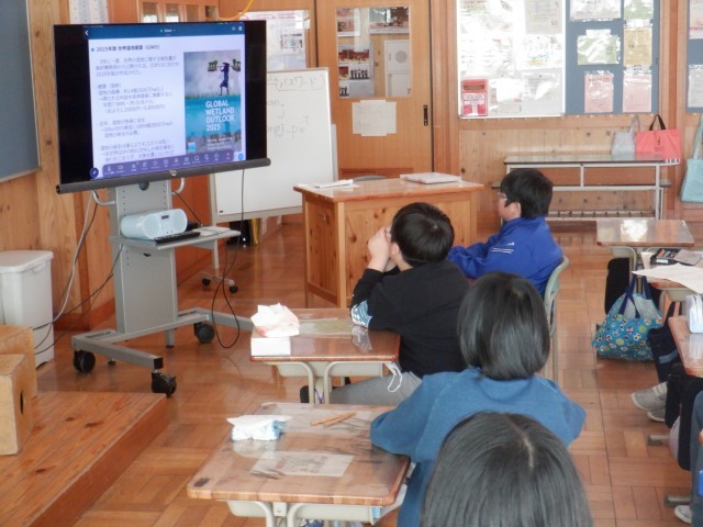 猪苗代湖がラムサール条約に登録された記念として、郡山市役所にて交流会が行われました。エコクラブとして猪苗代湖の水質調査をしていた4年生が、交流会の様子をZoomで視聴しました。 -