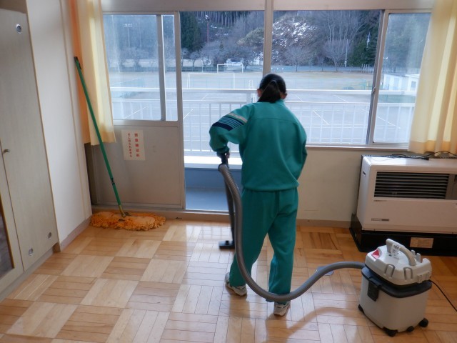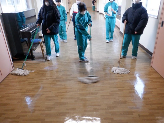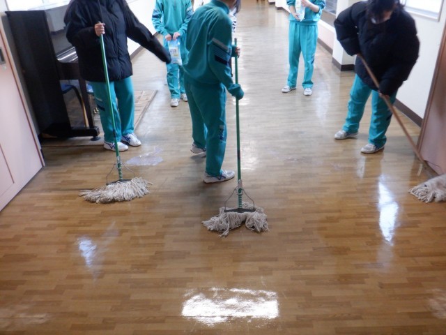 後期課程の生徒が美化作業としてワックスがけをおこないました。