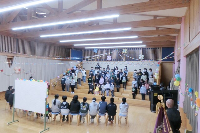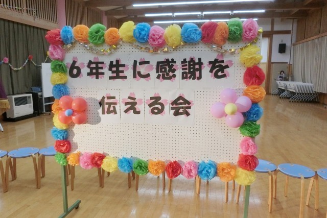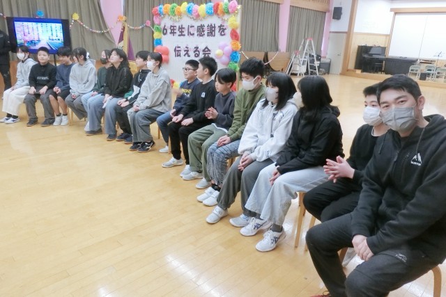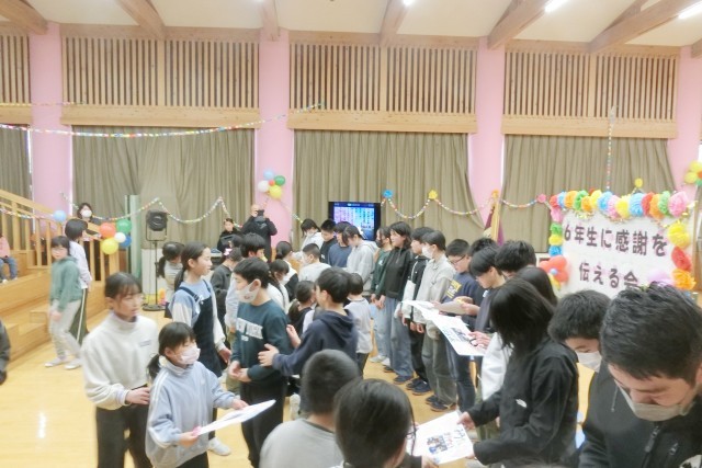 お世話になった6年生に感謝の気持ちを伝えました。一緒にゲームをしたり、クイズに答えたりして楽しみました。