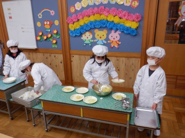 今日から給食が始まりました。1年生にとっては初めての給食です。