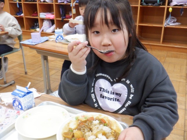 今日の給食はカレーライスです!