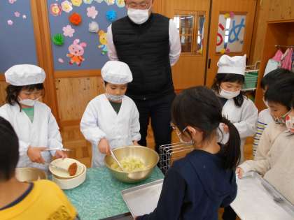 4/7から給食がスタートしました。みんな給食の時間が楽しみ。配膳も上手にできています。毎日モリモリ食べています。たくさん食べて大きくなあれ。