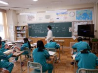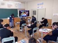 9年生がAETの先生と最後の授業でした。お互い英文で書かれたメッセージカード交換しました。