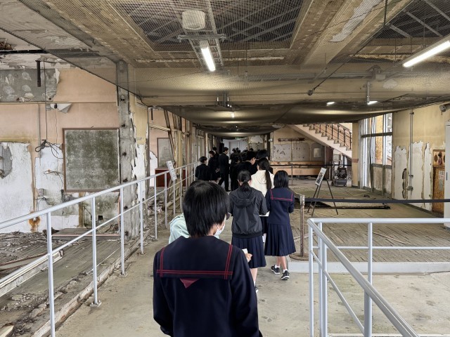 昼食も終わり、請戸小学校を各クラス毎に見学中です。