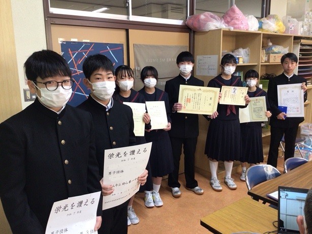 本日の朝、始業式前に受賞報告会がオンラインでありました。