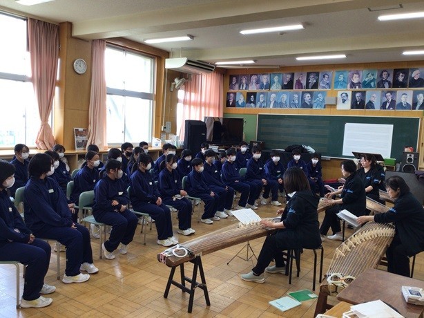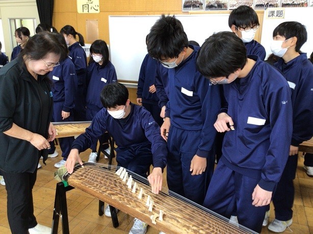 また、楽器演奏も体験し、我が国の伝統音楽に関する理解を深めました。