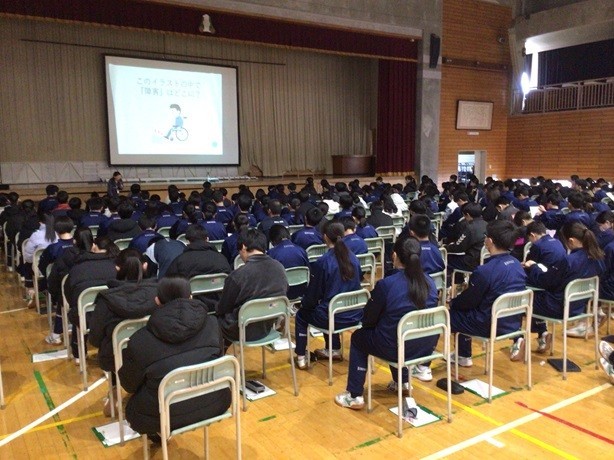 今日の5・6校時に、2学年を対象とした福祉教育講座が開かれました。